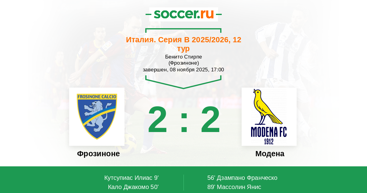 Фрозиноне - Модена: обзор матча 8 ноября 2025