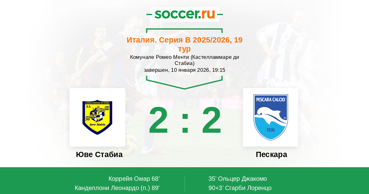 Юве Стабиа - Пескара: обзор матча 10 января 2026