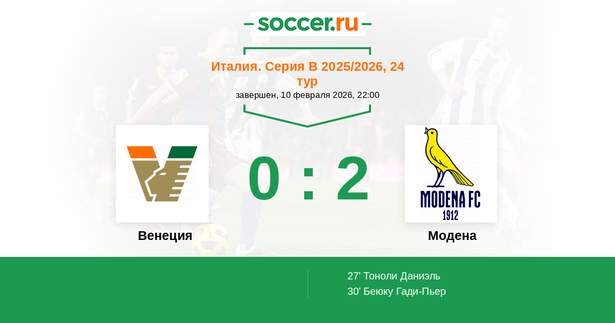 Венеция - Модена: обзор матча 10 февраля 2026