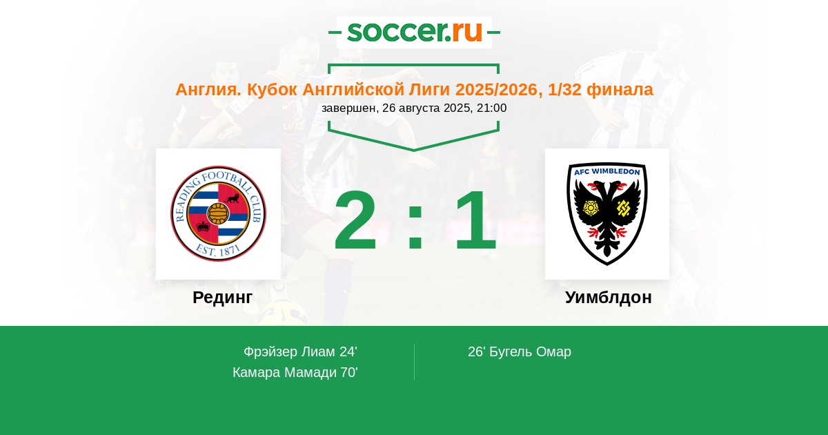 Рединг - Уимблдон: обзор матча 26 августа 2025