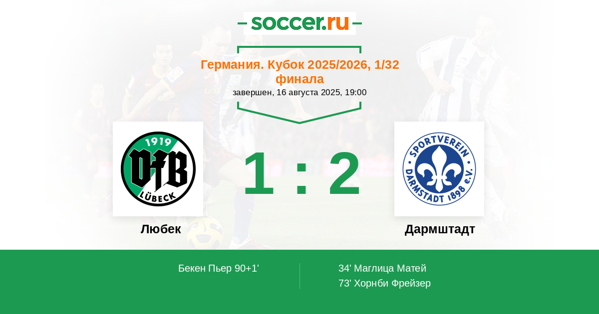 Любек - Дармштадт: обзор матча 16 августа 2025