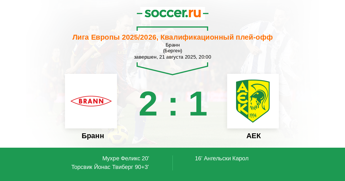 Бранн - АЕК: обзор матча 21 августа 2025
