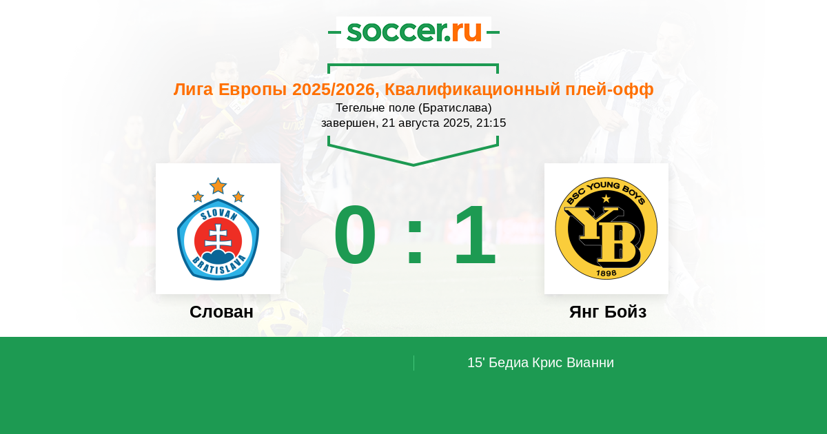 Слован - Янг Бойз: обзор матча 21 августа 2025