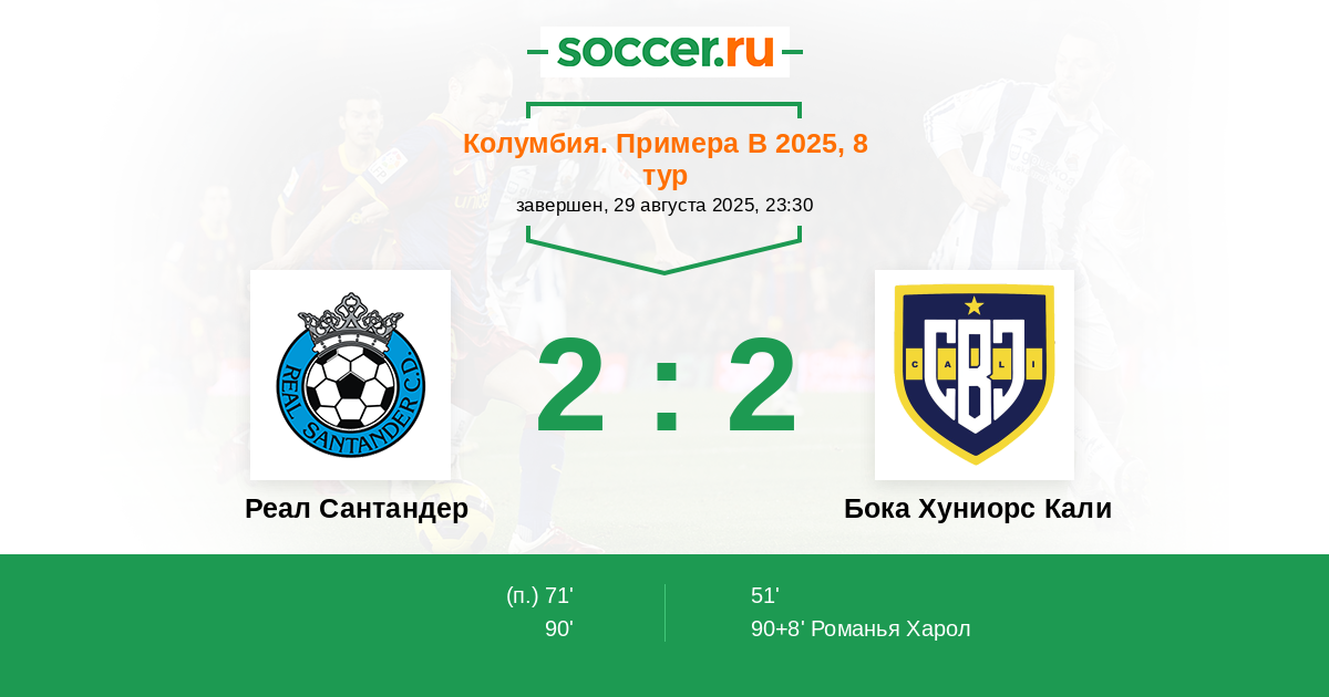 Реал Сантандер - Бока Хуниорс Кали: обзор матча 29 августа 2025