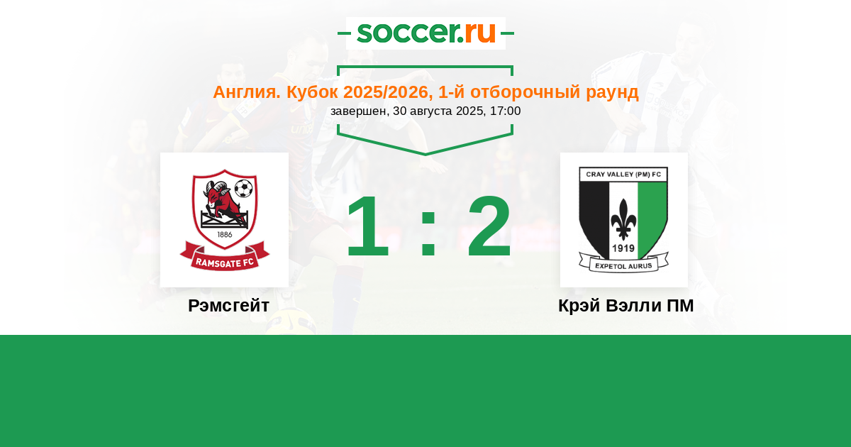 Рэмсгейт - Крэй Вэлли ПМ: обзор матча 30 августа 2025