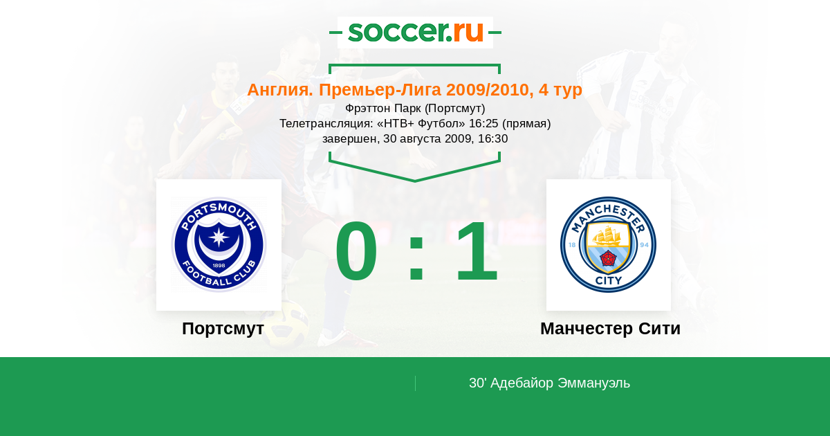 Портсмут - Манчестер Сити: обзор матча 30 августа 2009