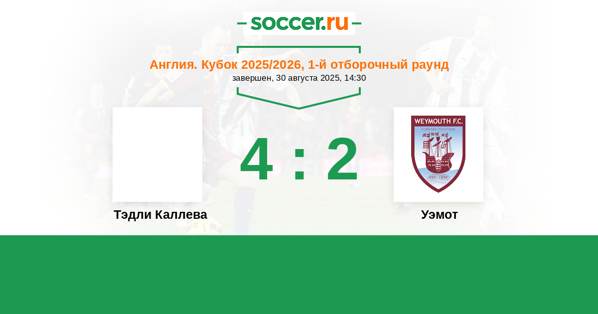 Тэдли Каллева - Уэмот: обзор матча 30 августа 2025