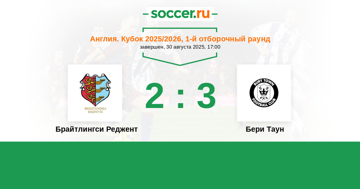 Брайтлингси Реджент - Бери Таун: обзор матча 30 августа 2025