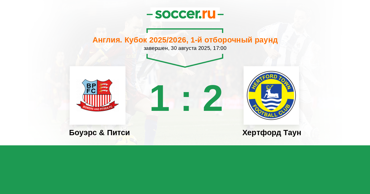 Боуэрс & Питси - Хертфорд Таун: обзор матча 30 августа 2025