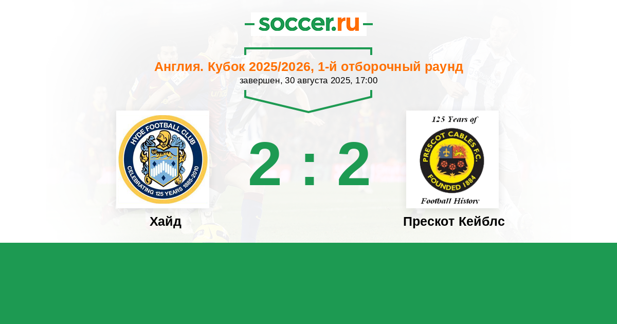 Хайд - Прескот Кейблс: обзор матча 30 августа 2025