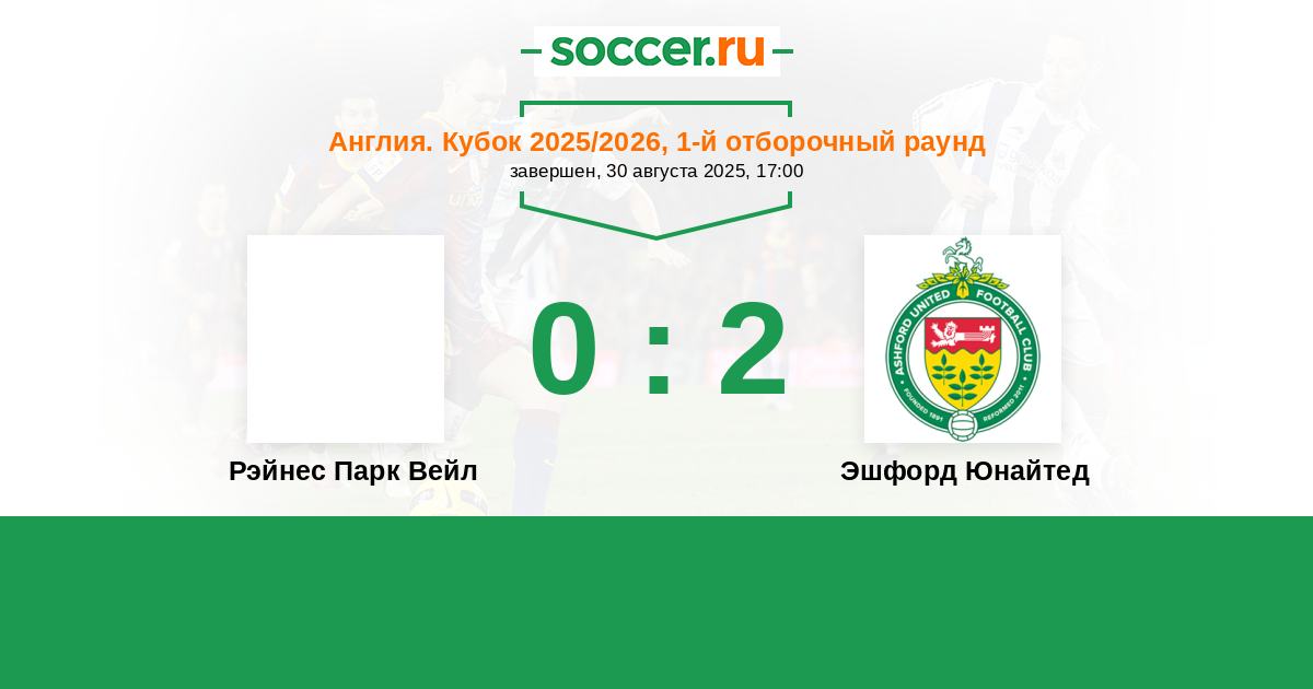 Рэйнес Парк Вейл - Эшфорд Юнайтед: обзор матча 30 августа 2025