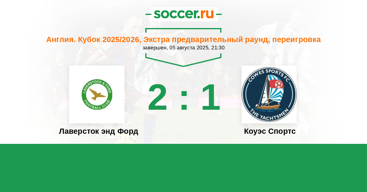 Лаверсток энд Форд - Коуэс Спортс: обзор матча 5 августа 2025