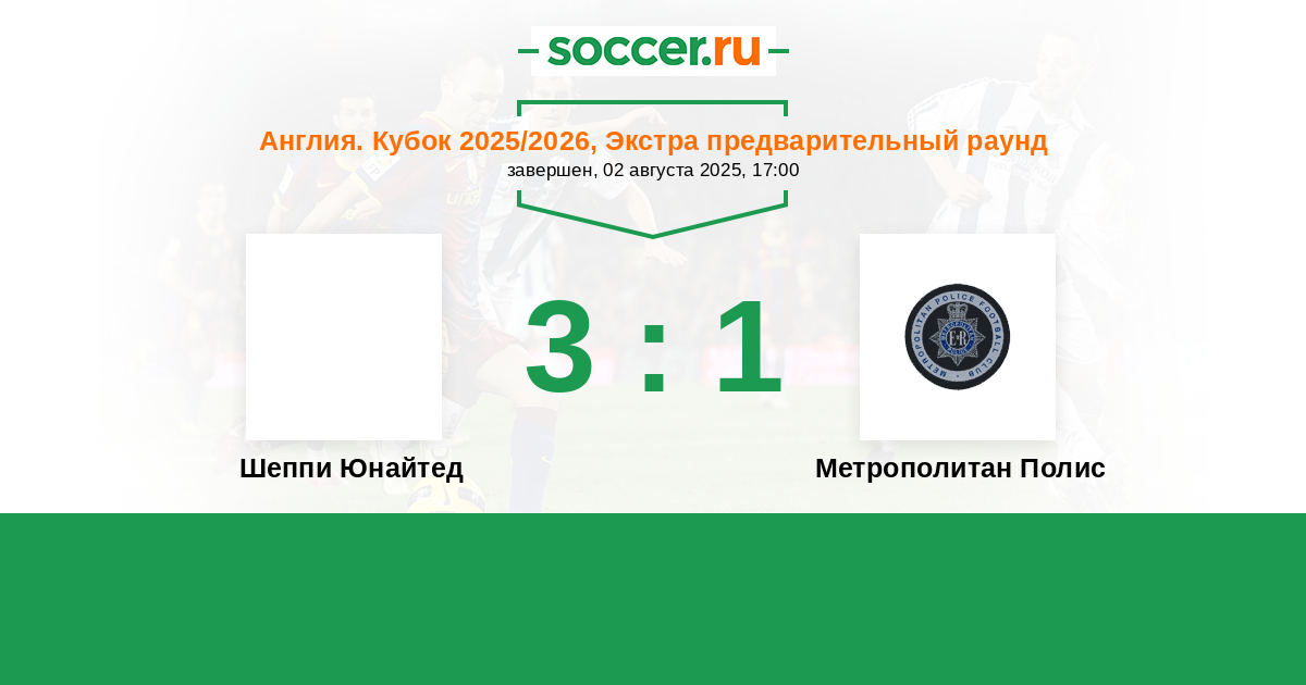 Шеппи Юнайтед - Метрополитан Полис: обзор матча 2 августа 2025