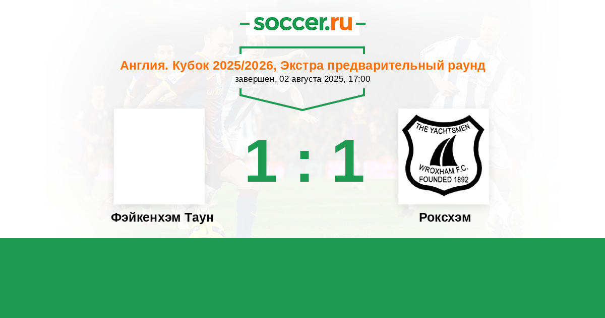 Фэйкенхэм Таун - Роксхэм: обзор матча 2 августа 2025