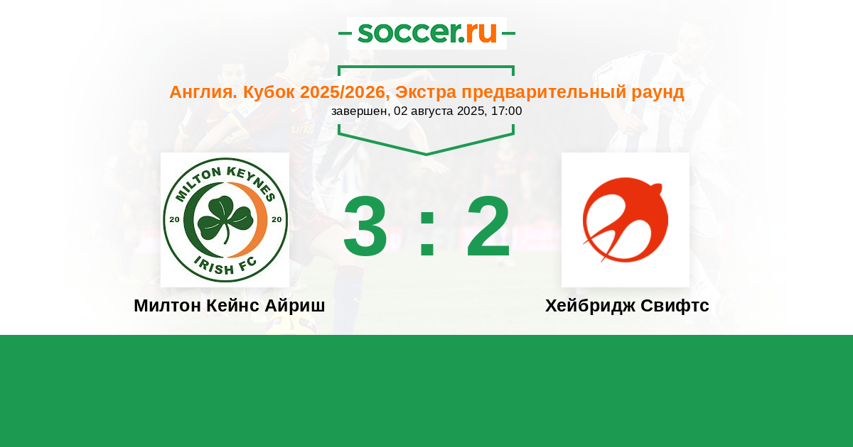 Милтон Кейнс Айриш - Хейбридж Свифтс: обзор матча 2 августа 2025