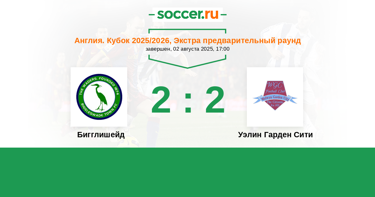 Бигглишейд - Уэлин Гарден Сити: обзор матча 2 августа 2025