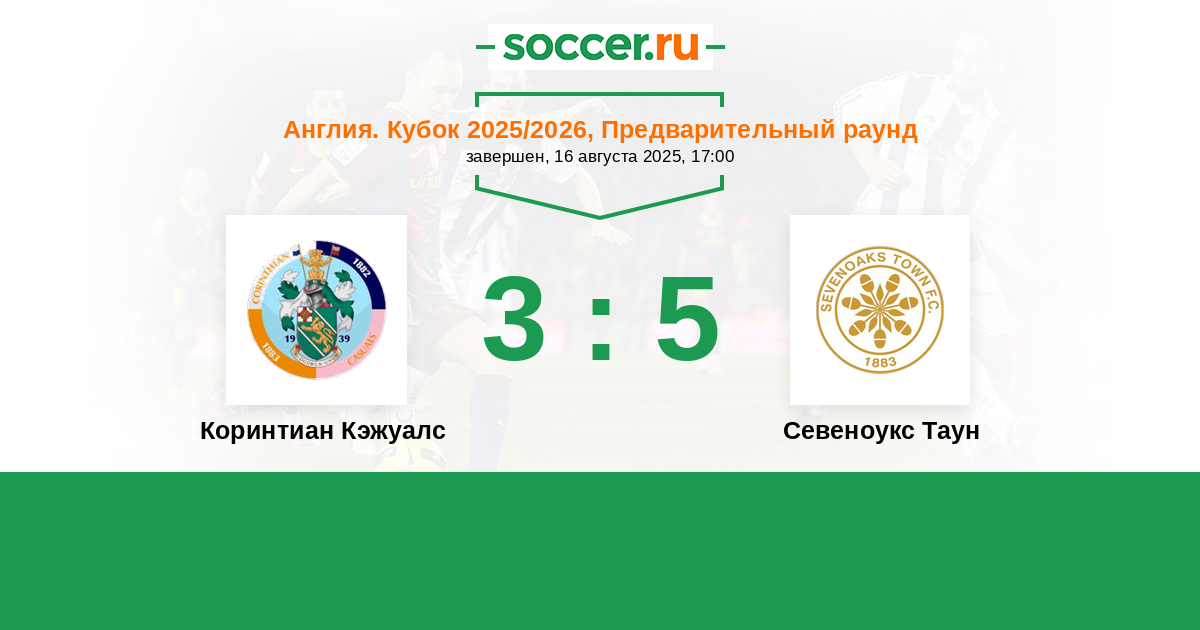 Коринтиан Кэжуалс - Севеноукс Таун: обзор матча 16 августа 2025