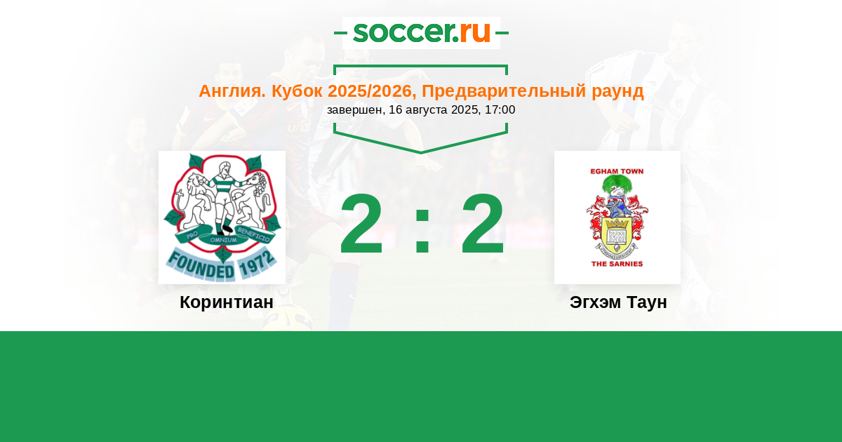 Коринтиан - Эгхэм Таун: обзор матча 16 августа 2025