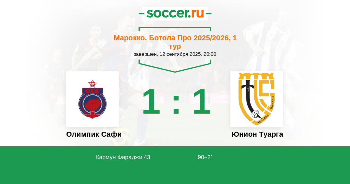 Олимпик Сафи - Юнион Туарга: обзор матча 12 сентября 2025