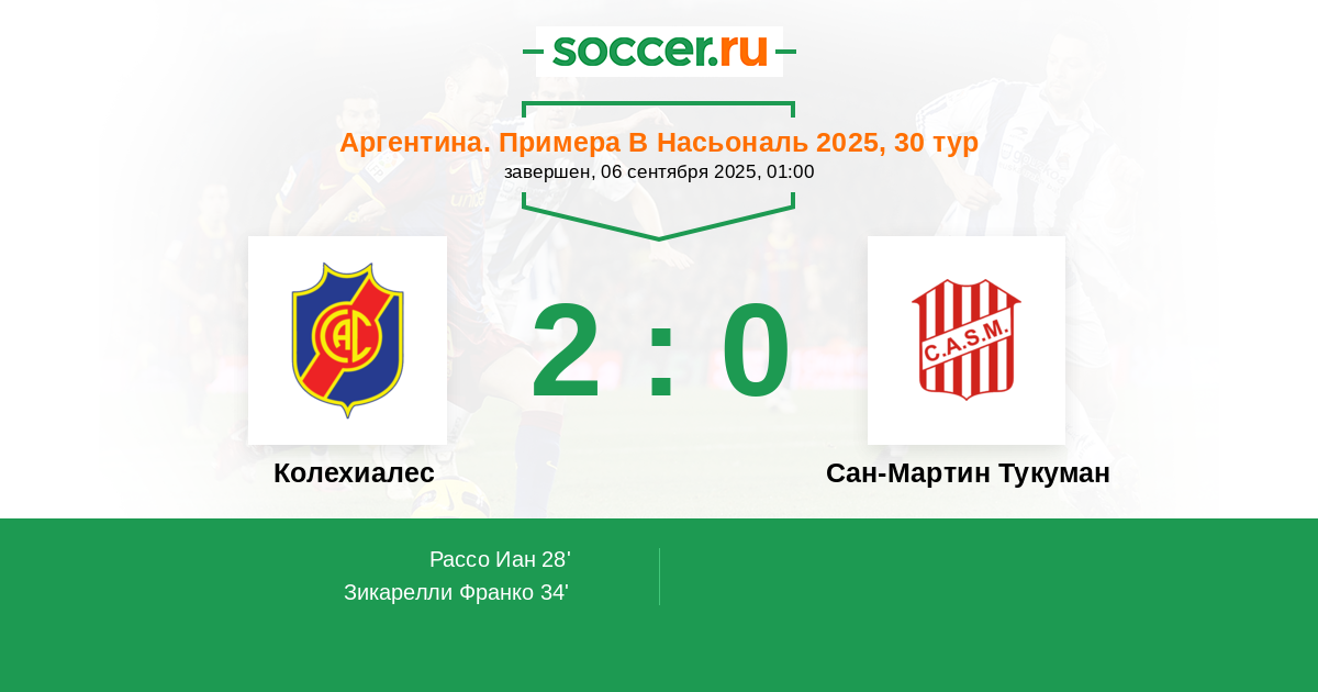 Колехиалес - Сан-Мартин Тукуман: обзор матча 6 сентября 2025