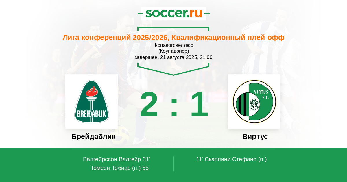 Брейдаблик - Виртус: обзор матча 21 августа 2025