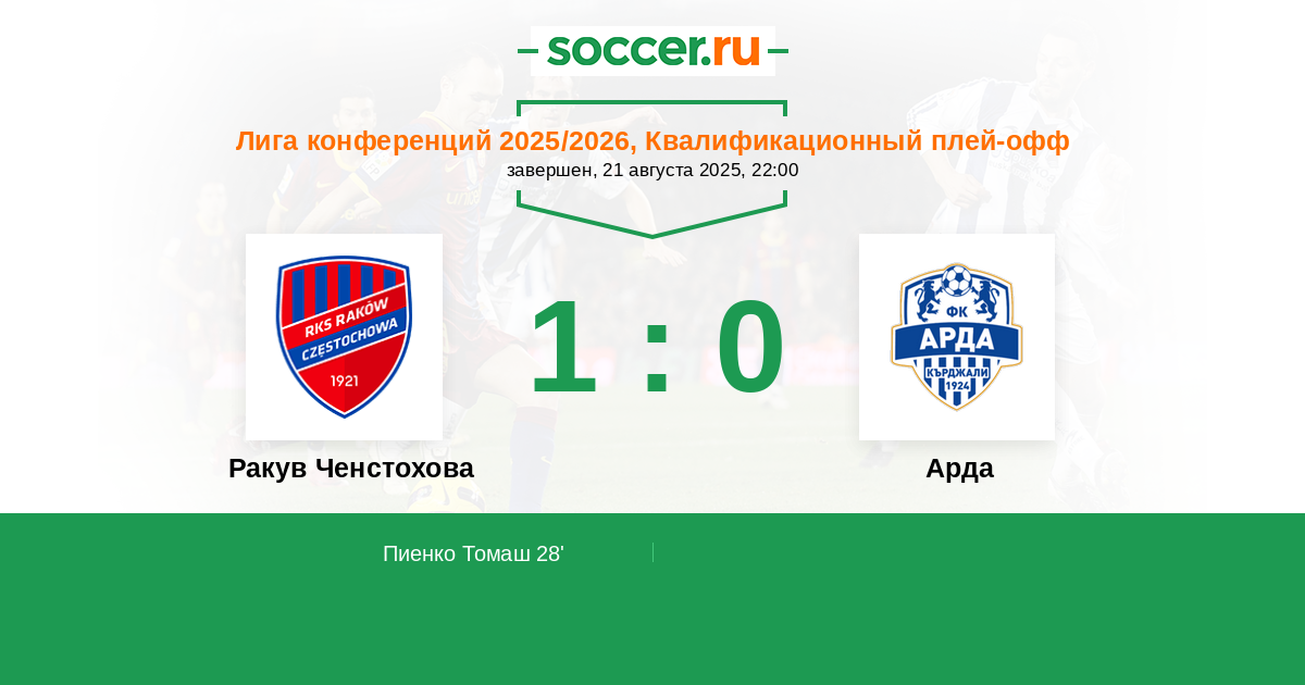 Ракув Ченстохова - Арда: обзор матча 21 августа 2025