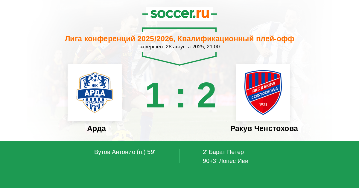 Арда - Ракув Ченстохова: обзор матча 28 августа 2025
