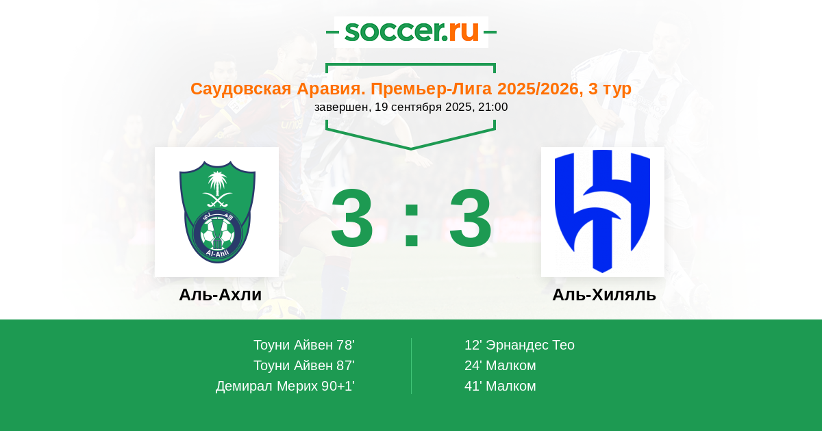 Аль-Ахли - Аль-Хиляль: обзор матча 19 сентября 2025