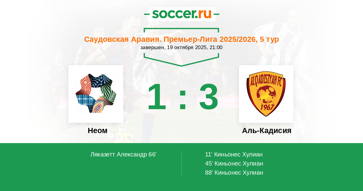 Неом - Аль-Кадисия: обзор матча 19 октября 2025