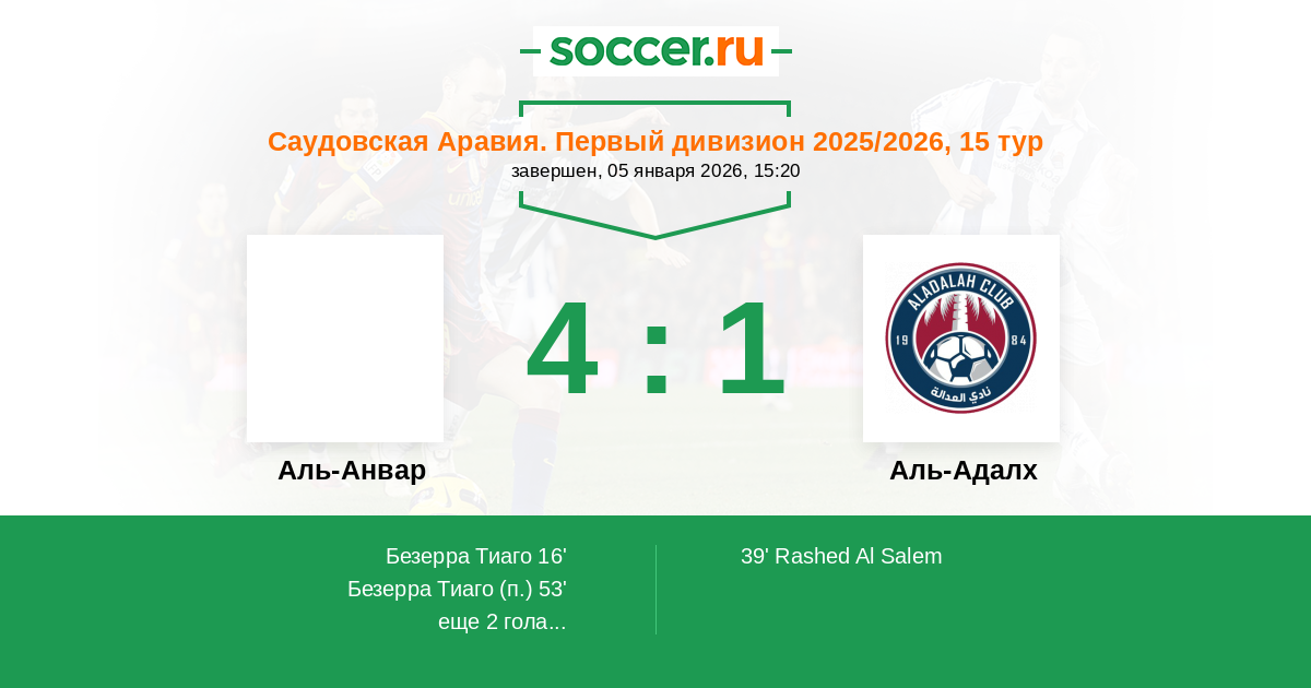 Аль-Анвар - Аль-Адалх: обзор матча 5 января 2026