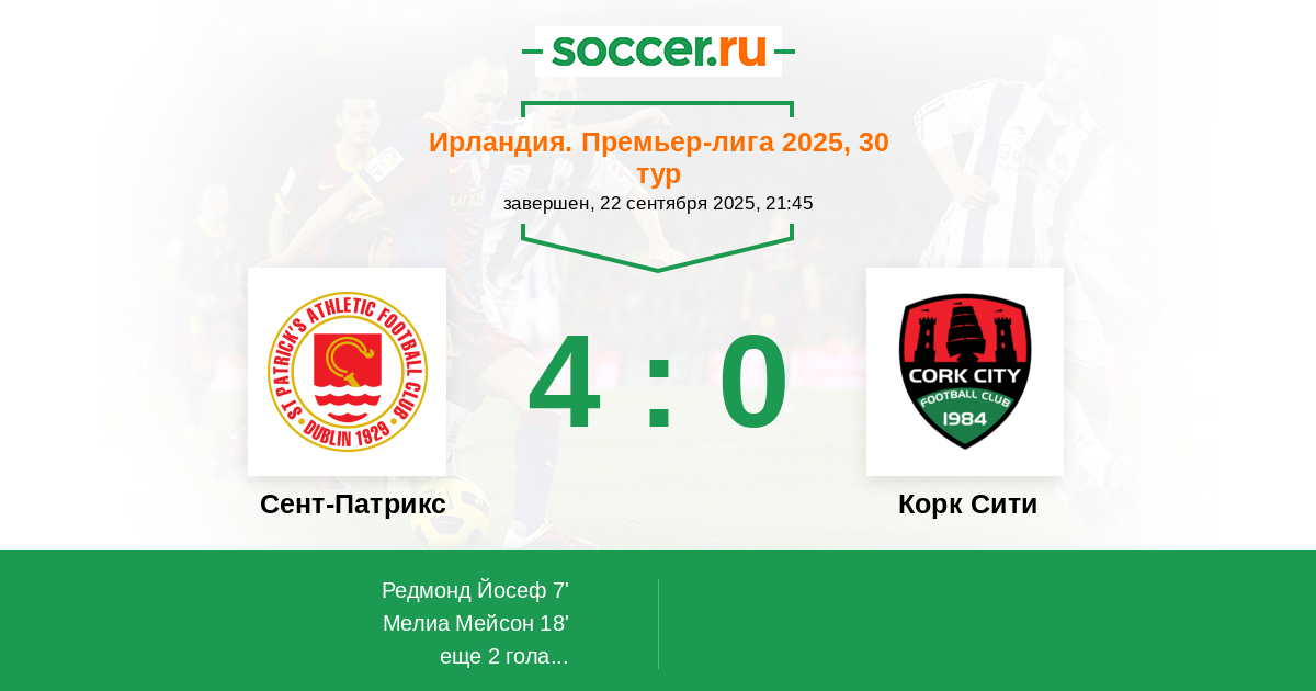 Сент-Патрикс - Корк Сити: обзор матча 22 сентября 2025