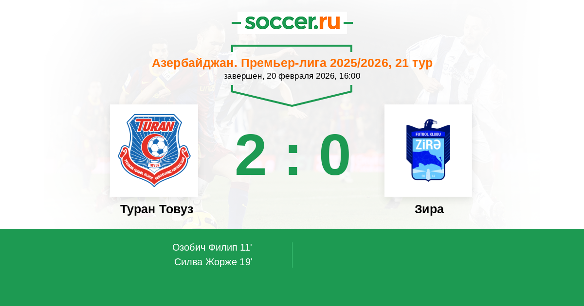 Туран Товуз - Зира: обзор матча 20 февраля 2026
