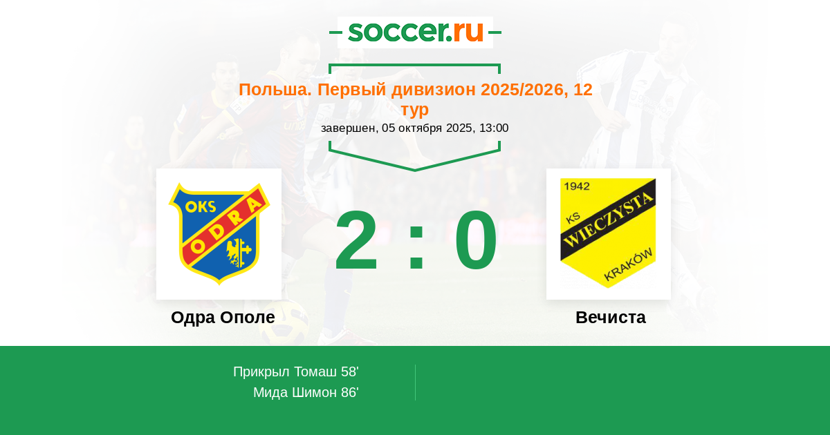 Одра Ополе - Вечиста: обзор матча 5 октября 2025