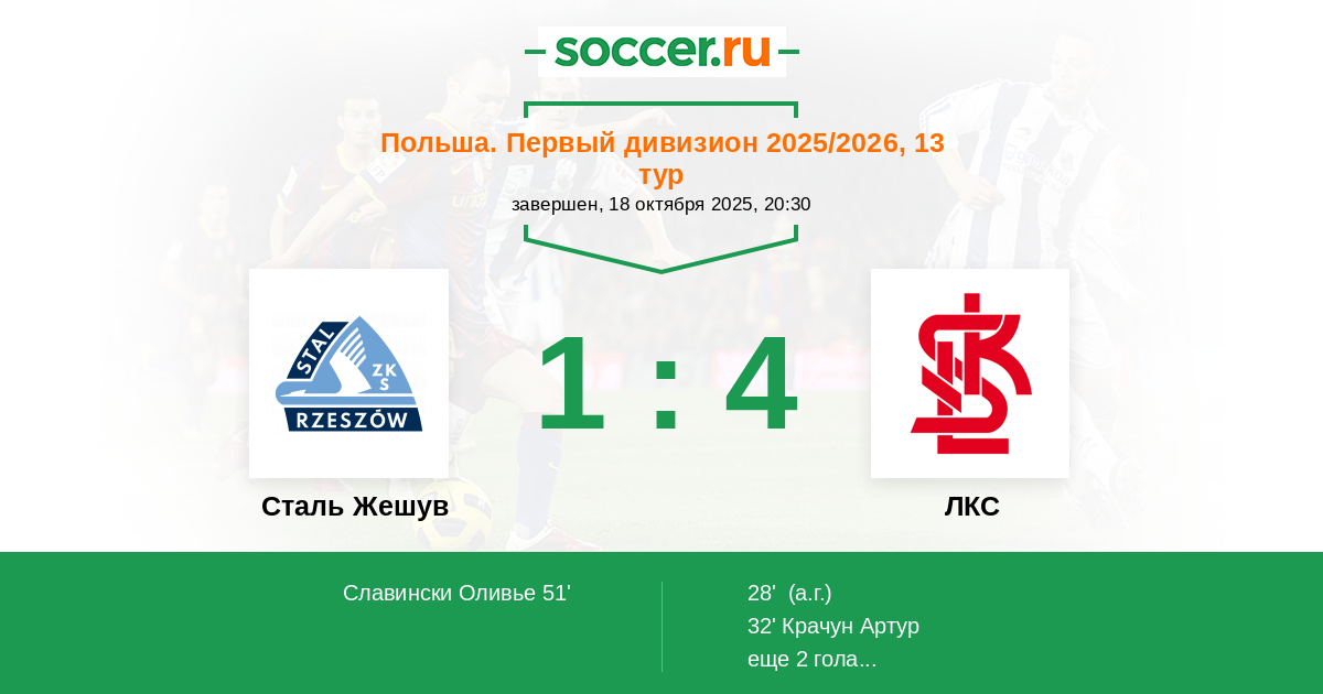 Сталь Жешув - ЛКС: обзор матча 18 октября 2025
