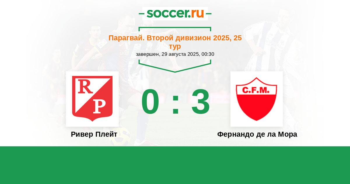 Ривер Плейт - Фернандо де ла Мора: обзор матча 29 августа 2025