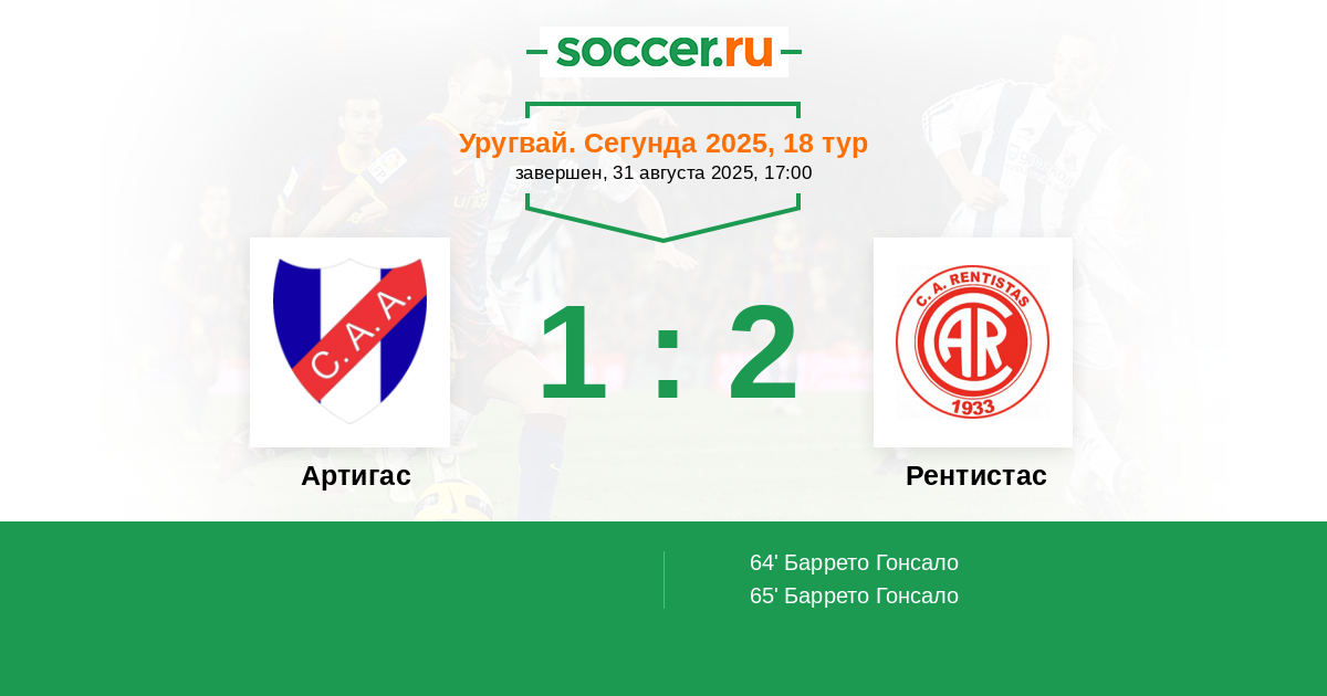 Артигас - Рентистас: обзор матча 31 августа 2025