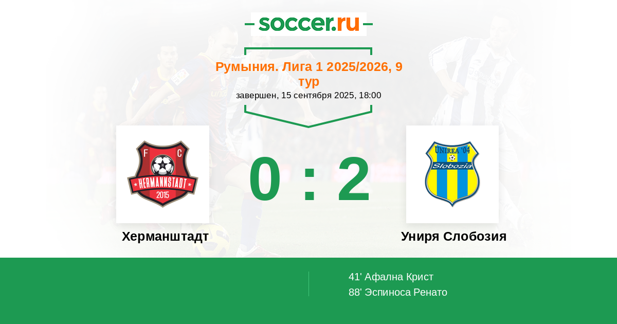 Херманштадт - Униря Слобозия: обзор матча 15 сентября 2025