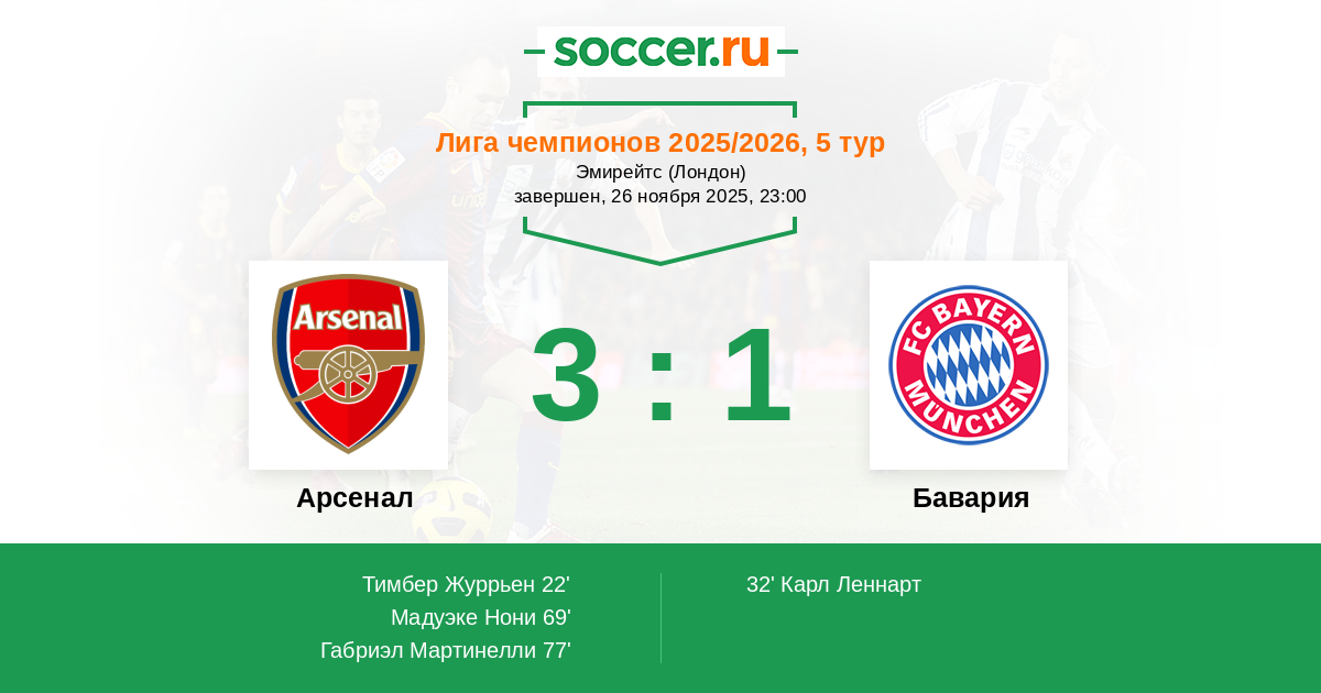 Арсенал - Бавария: обзор матча 26 ноября 2025