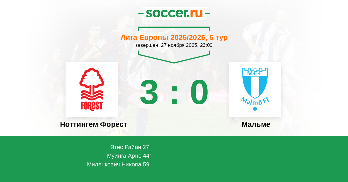 Ноттингем Форест - Мальме: обзор матча 27 ноября 2025