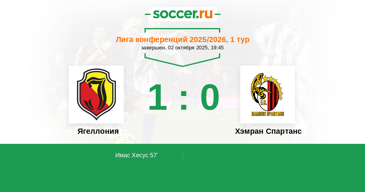 Ягеллония - Хэмран Спартанс: обзор матча 2 октября 2025