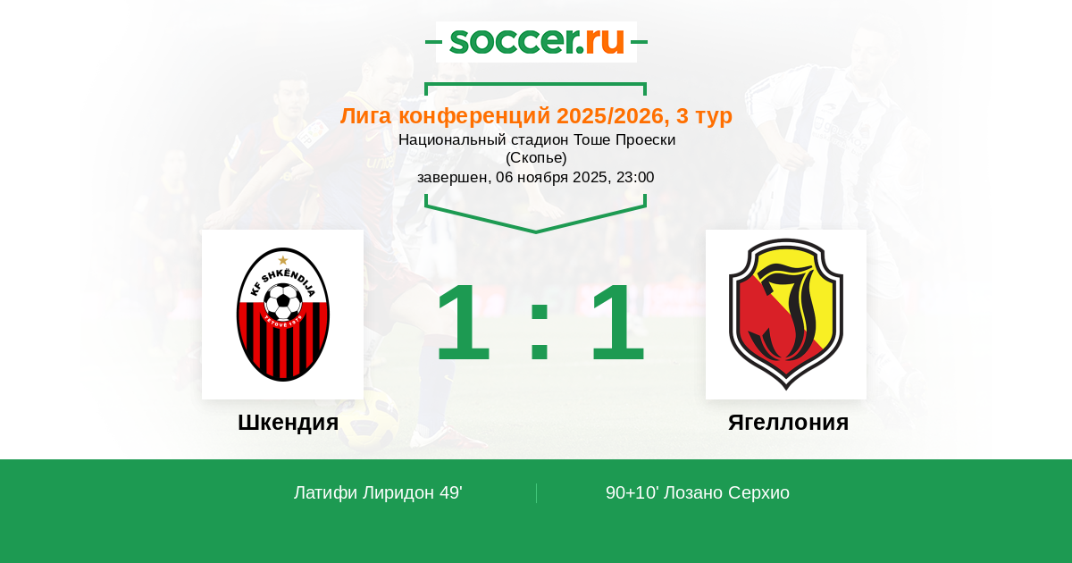 Шкендия - Ягеллония: обзор матча 6 ноября 2025