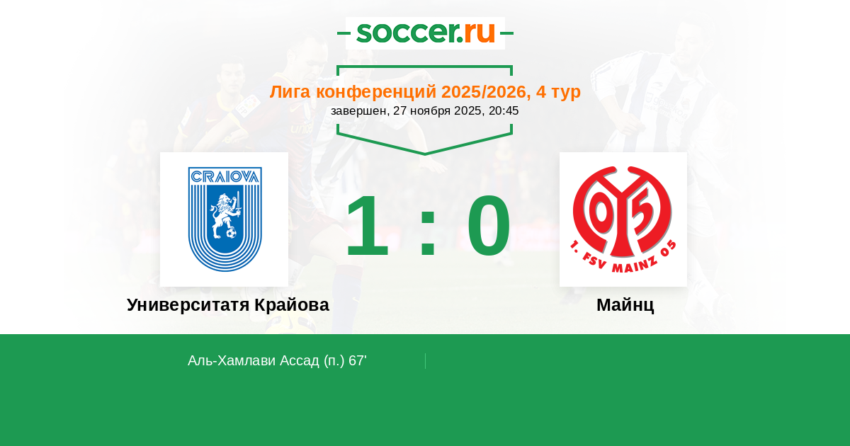 Университатя Крайова - Майнц: обзор матча 27 ноября 2025