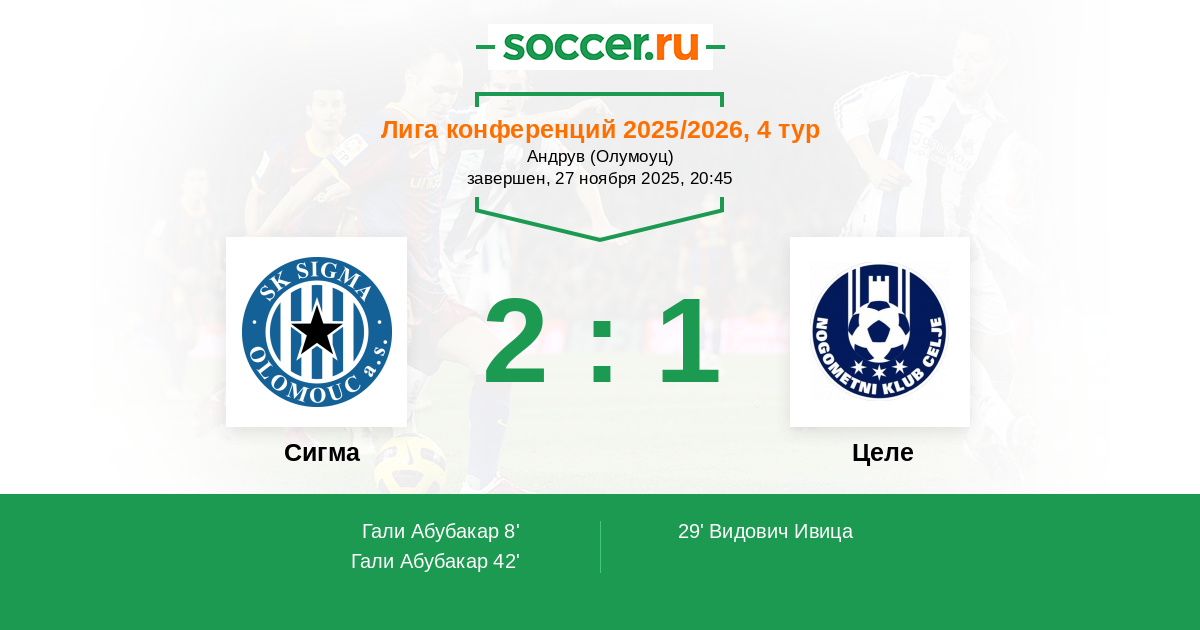 Сигма - Целе: обзор матча 27 ноября 2025