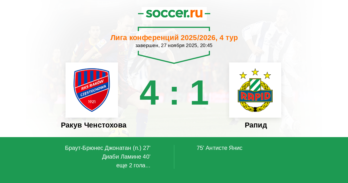 Ракув Ченстохова - Рапид: обзор матча 27 ноября 2025