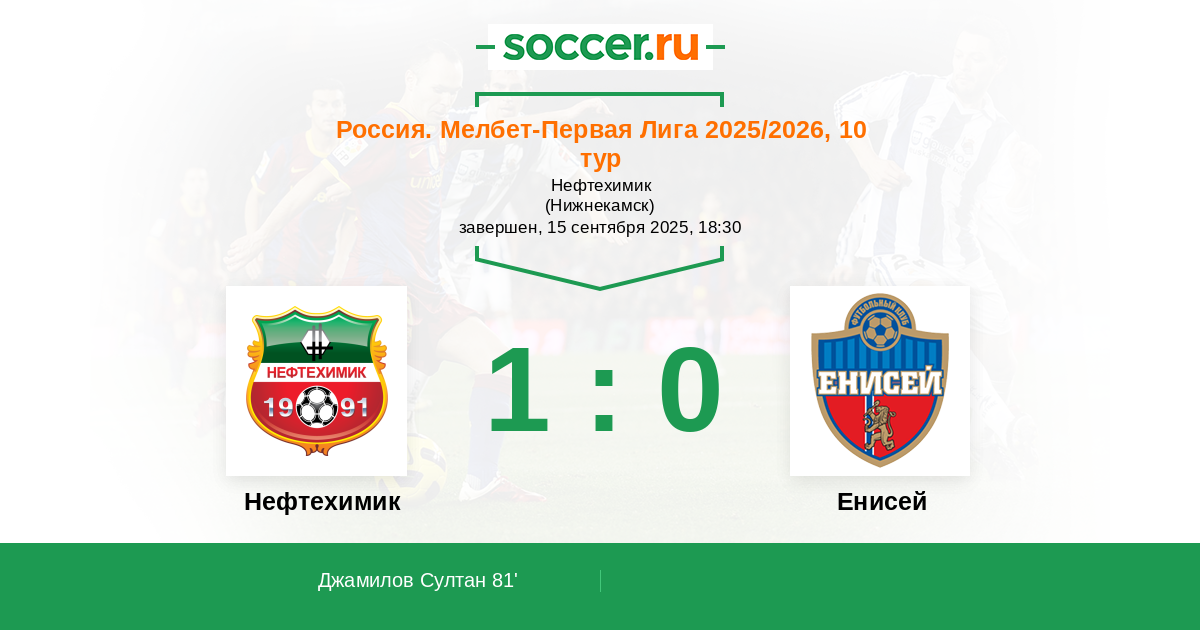 Нефтехимик - Енисей: обзор матча 15 сентября 2025
