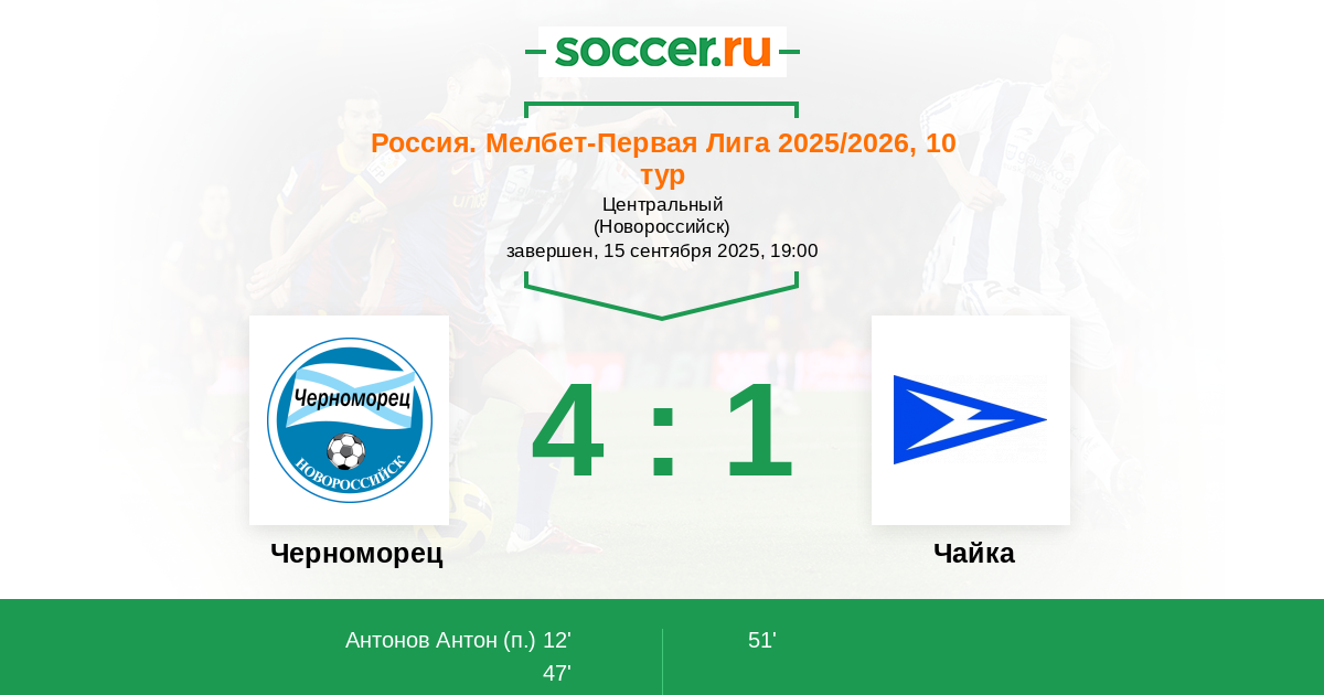Черноморец - Чайка: обзор матча 15 сентября 2025