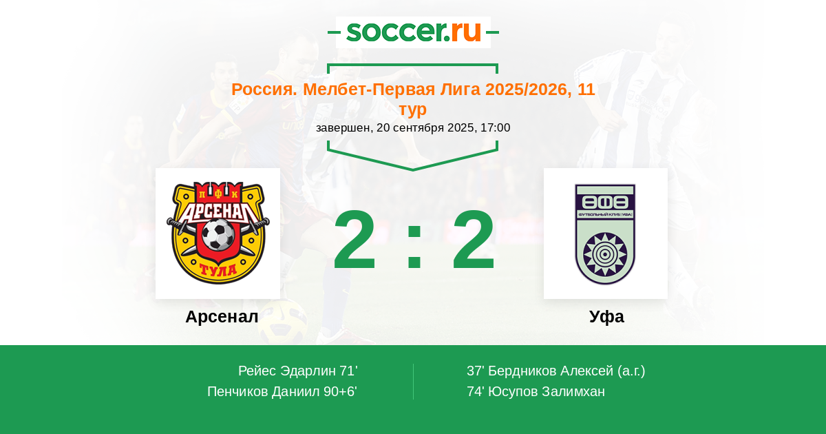 Арсенал - Уфа: обзор матча 20 сентября 2025