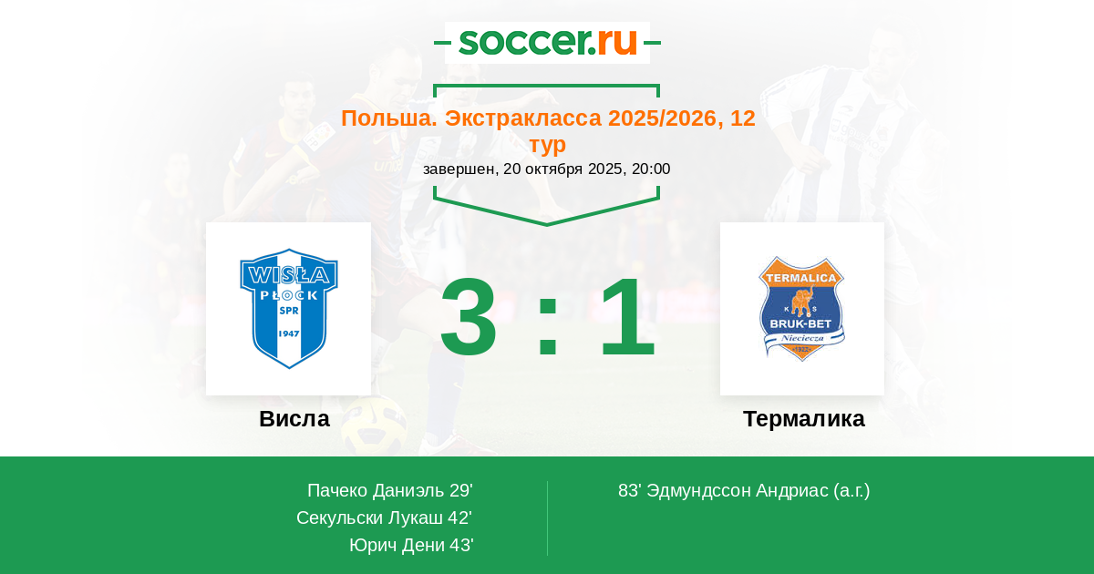 Висла - Термалика: обзор матча 20 октября 2025