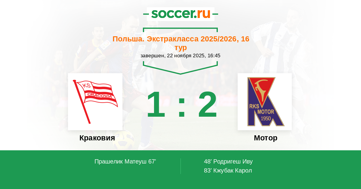 Краковия - Мотор: обзор матча 22 ноября 2025