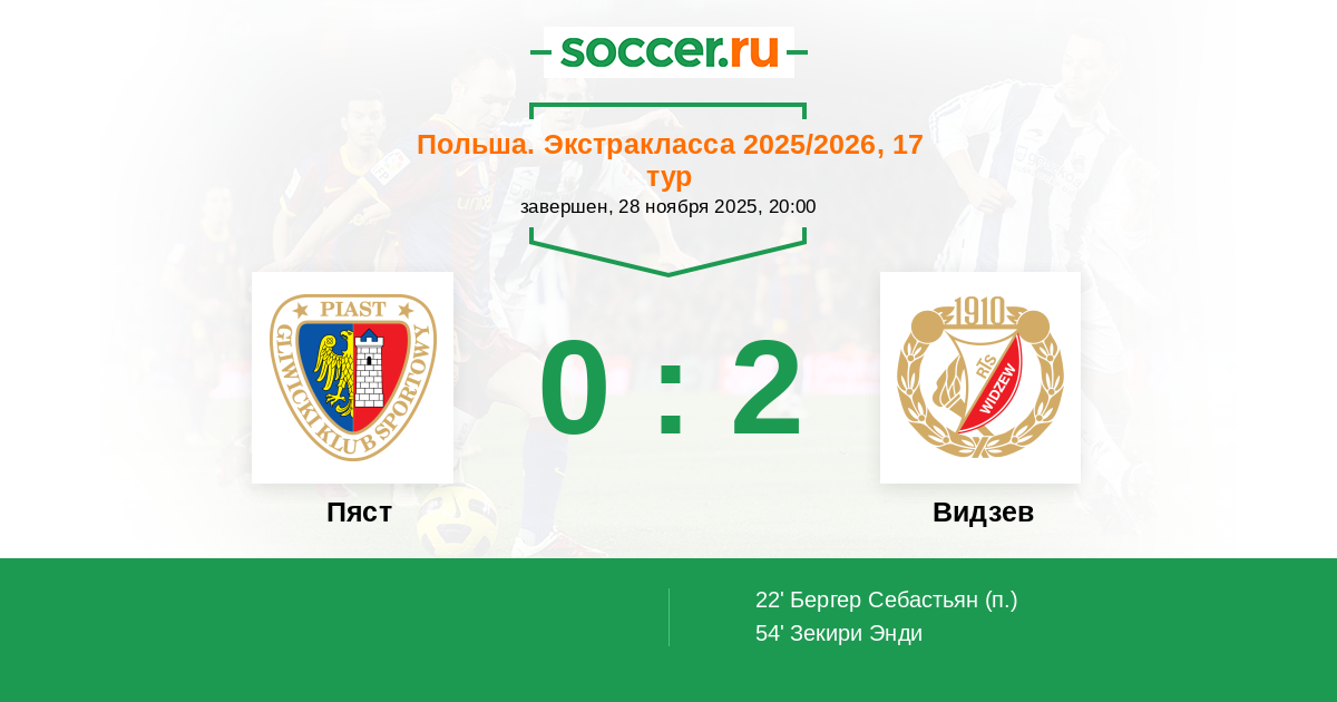 Пяст - Видзев: обзор матча 28 ноября 2025